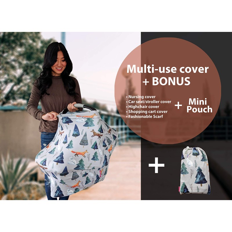 - ULTIMATE VERSATILITY - It’s an infant car seat cover, breastfeeding cover up, shopping cart cover, high chair cover for baby, AND an infinity scarf for moms all in one item, and it’s with you wherever you go! The ultimate stroller accessory.