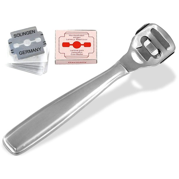 • Spare Blades – you will receive 10 Replacement Blades for hard skin in square standard design made in Germany – Solingen