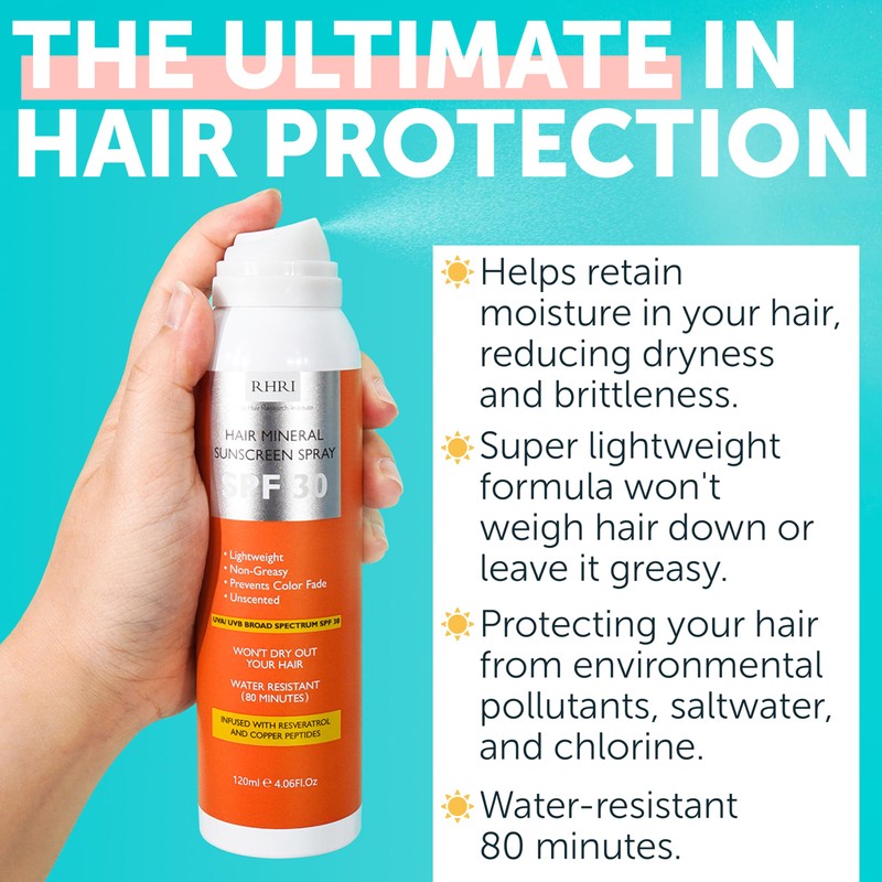 - Powerful SPF 30 Hair and Scalp Protection from UV Rays: Our Premium SPF 30 Hair and Scalp Sunscreen Spray offers top-tier protection against harmful UV rays, effectively preventing color fade, dryness, and sun damage. Whether you have natural, color-treated, or chemically processed hair, this sunscreen for hair and scalp provides a protective barrier, ensuring your hair stays vibrant and your scalp remains nourished. This non-greasy aerosol sunscreen is ideal for anyone looking to shield their hair from the harsh effects of sun exposure, ensuring maximum UV protection in every spray.