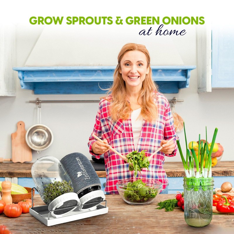 Premium Sprouts Growing Kit & Green Onion Regrower with 2 Mason Jars & Superior Sprout lids. Perfect Sprouter Set for Growing Broccoli, Alfalfa & Beans.