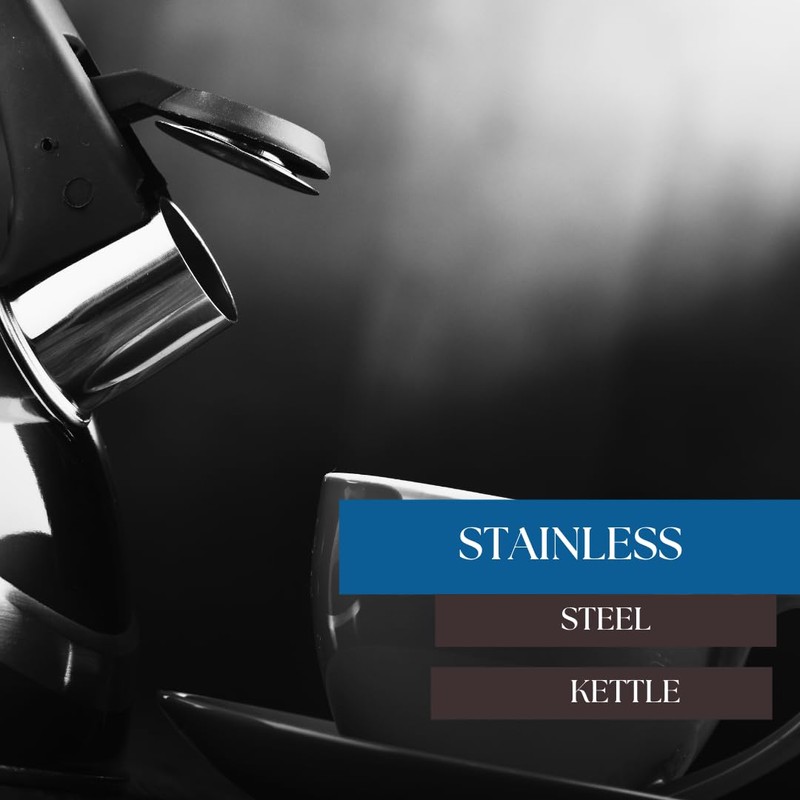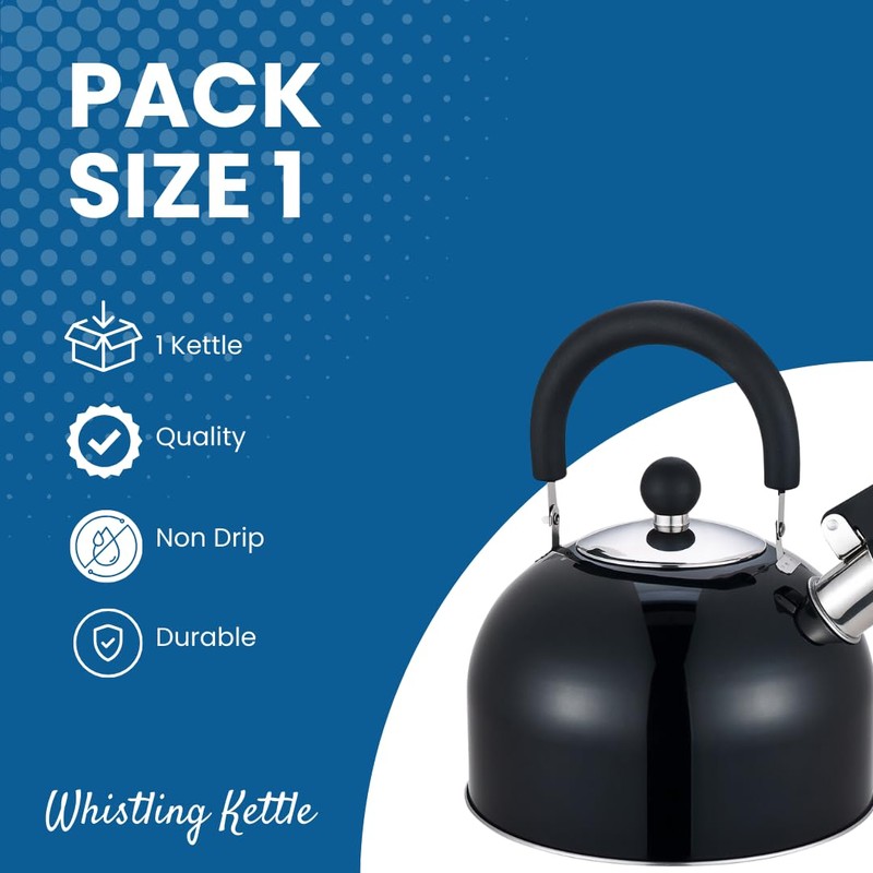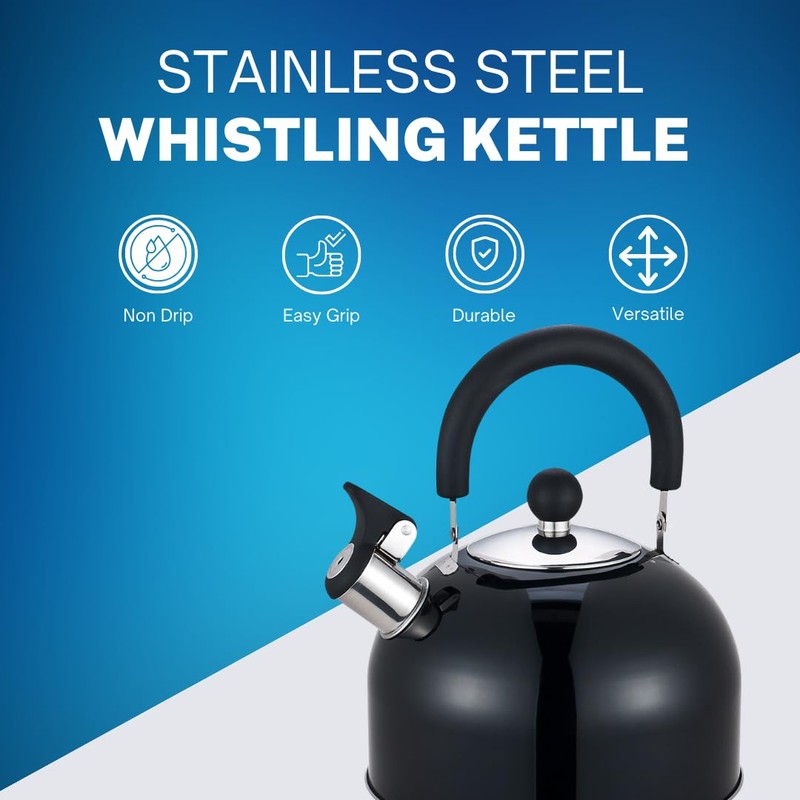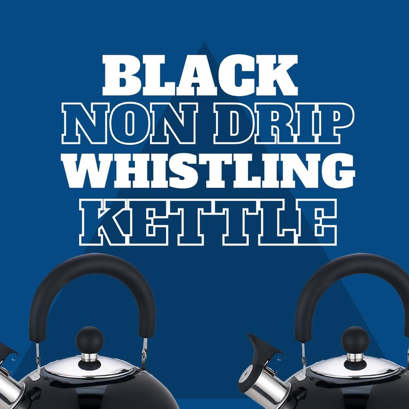 Premium Stainless Steel Whistling Kettle | 10 Colors | Stove top | Non-Drip Pouring Spout | Cool Touch Handle | Whistling Spout | 2.5L Capacity (Black)
