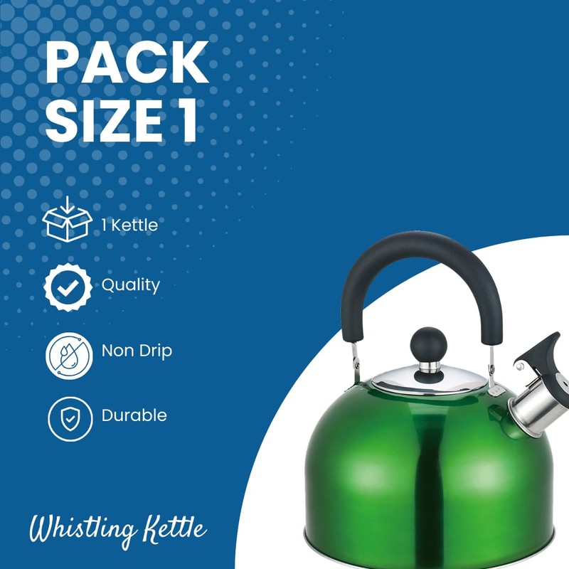 Premium Stainless Steel Whistling Kettle | 10 Colors | Stove top | Non-Drip Pouring Spout | Cool Touch Handle | Whistling Spout | 2.5L Capacity (Metallic Green)