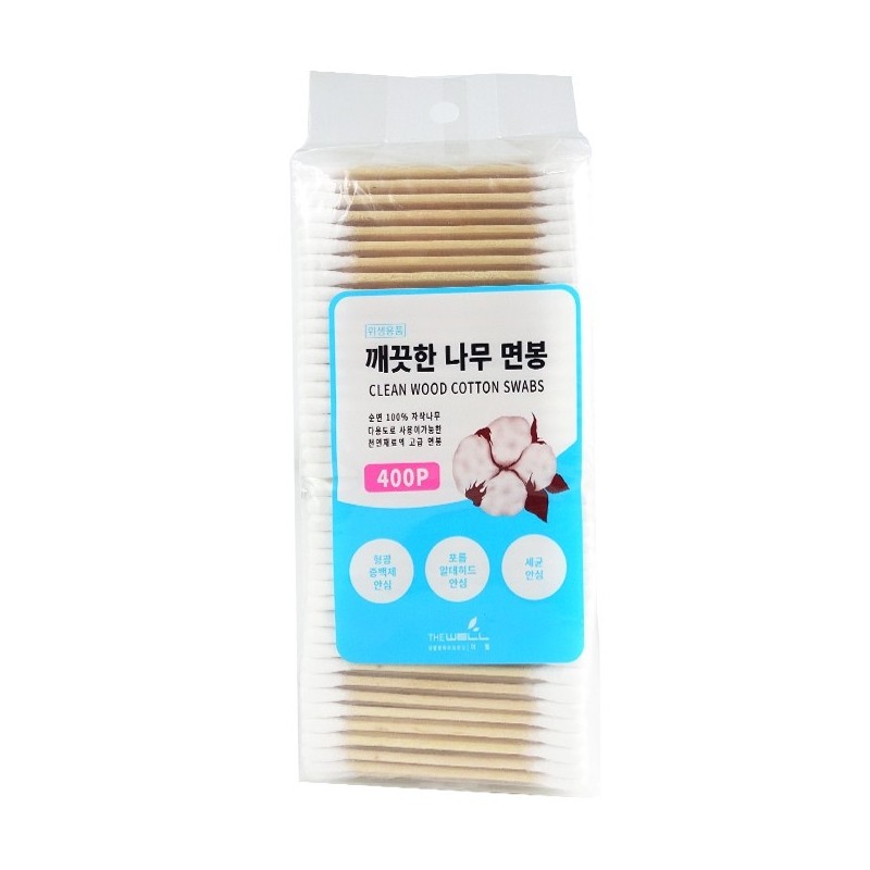 Premium Sterilized Wooden Cotton Swabs for Babies, 400 Count Polybag 4-Pack Bulk Packaging 120ea