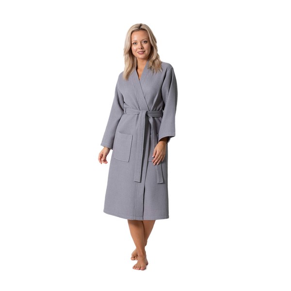 Premium Turkish Cotton Waffle Weave Lightweight Kimono Spa, Gray, Size Xx-Large