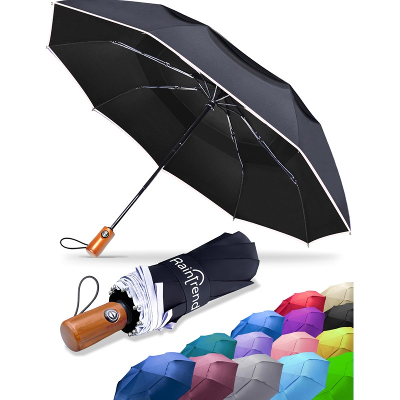 - WINDPROOF UMBRELLA Double Canopy with reflective stripe is well-designed and elegant. Ergonomic wooden handle is of classic style. Size of the oversized umbrella is perfect to cover up to 2 people to protect from rain! Reflective strip improves your visibility at night and in the rain
