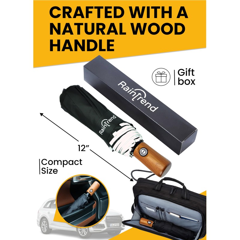 - FOLDABLE UMBRELLA BLACK is the best gift idea. The Rain Umbrella is delivered in a gift box, ready to go. Elegant automatic umbrella will become the best gift to every man and woman!