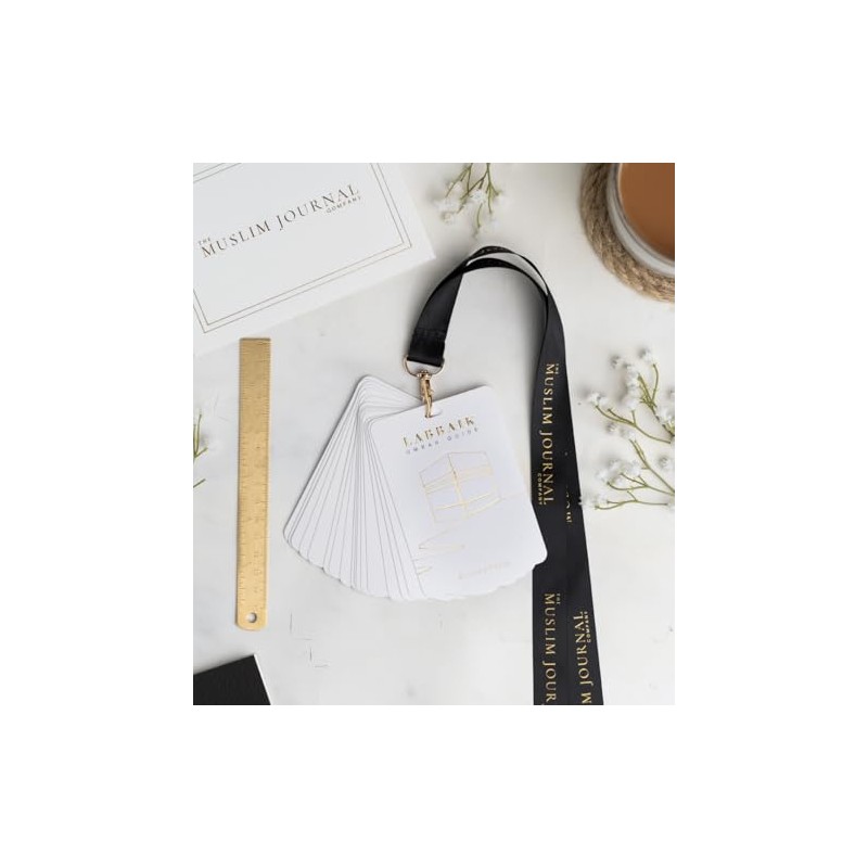 - Compact Guide: Portable Umrah dua cards with a convenient black lanyard for easy reference during your pilgrimage.