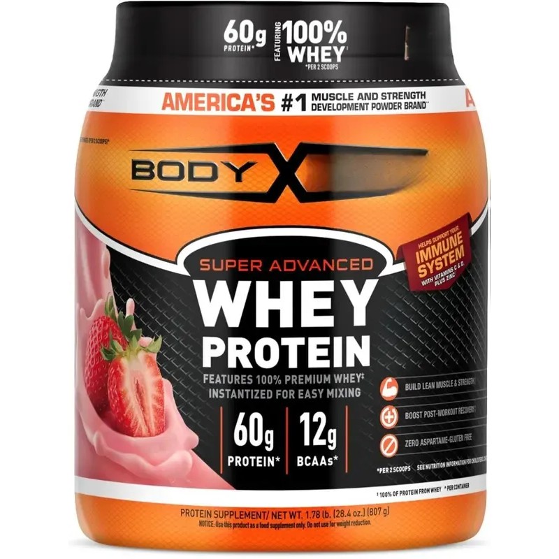 Fuel your fitness and support your immune health with Super Advanced Whey Protein Powder in delicious strawberry flavor. Each serving delivers 30g of premium whey protein, designed for muscle growth, recovery, and overall wellness.