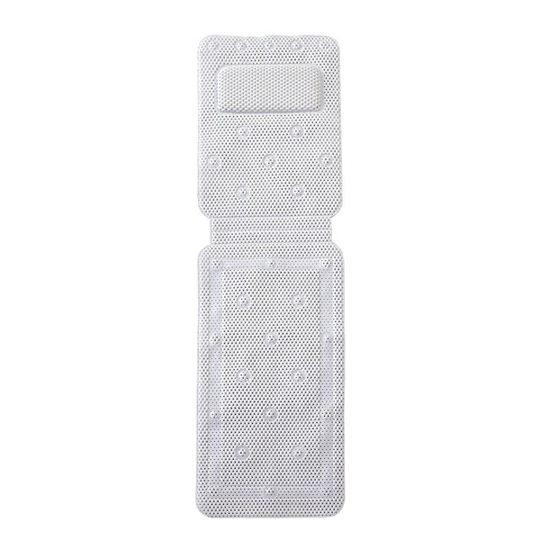 Premium White PVC Bath Pillow Mat with 30 Suction Cups, 4.1ft x 1.18ft, Quick-Drying & Comfortable Design