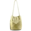 Premium Women's Fashion Designer Medium Size Large Handle Plain Soft Vegan Leather Hobo Round Bucket Tote Shoulder Bag (Gold)
