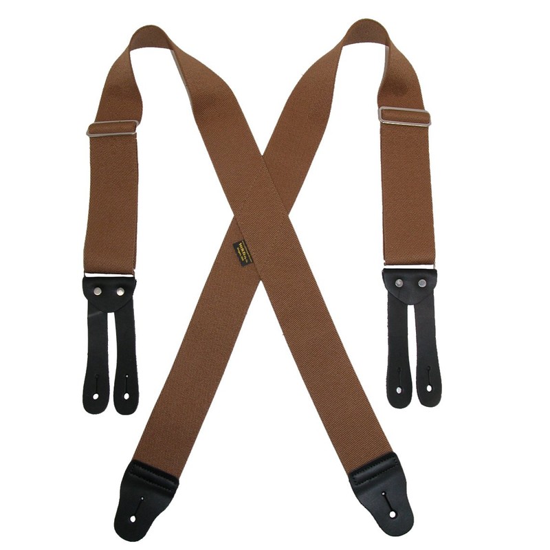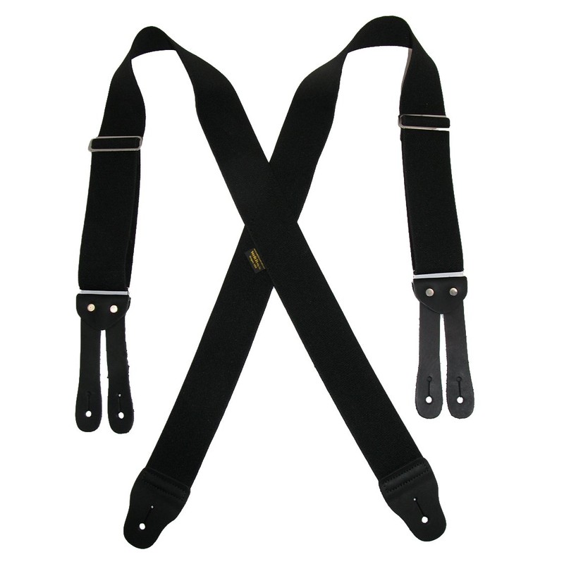 The ultimate pair of suspenders when you work a tough job. Welch Logger Suspenders are made with 2-inch wide premium polyester elastic webbing with low stretch elasticity. These American made suspenders are designed with a sewn X-back for serious support, and the straps have polished nickel slide adjusters for setting the perfect length. Industrial leather button-on attachments with metal rivets provide a secure hold on your jeans or work pants, providing you all day comfort & peace of mind. Offered in two lengths--a 46-inch to fit those between 5'2" to 6'1" tall & a 54-inch to fit those between 6'1" to 6'5" tall of average build. Available in 6 great colors, in addition to an alligator clip on version!