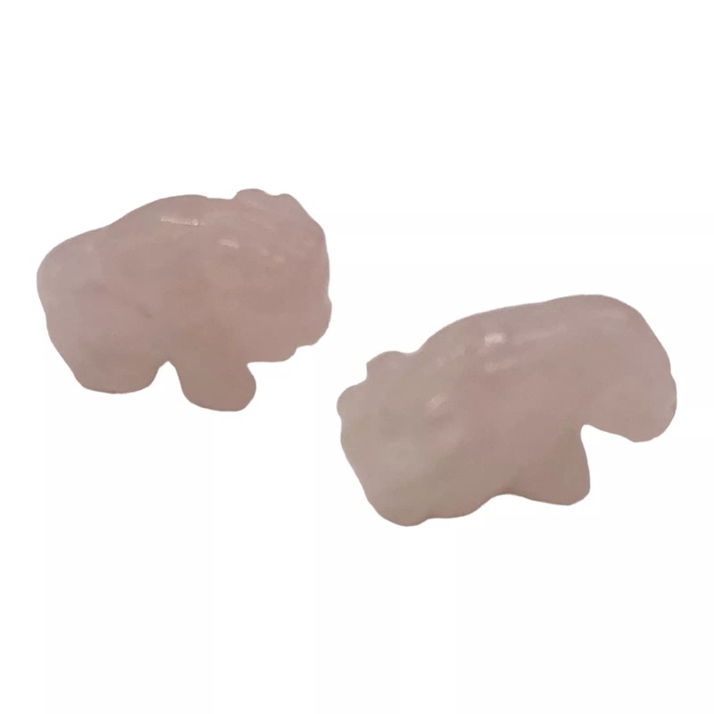 This is for two (2) Hand carved ROSE QUARTZ Buffalo / Bison Beads! The Bison is like a hologram - one example of abundance - it's behemoth features are a physical manifestation of the store-holds available in the energetic realms. These beads are drilled back to belly.