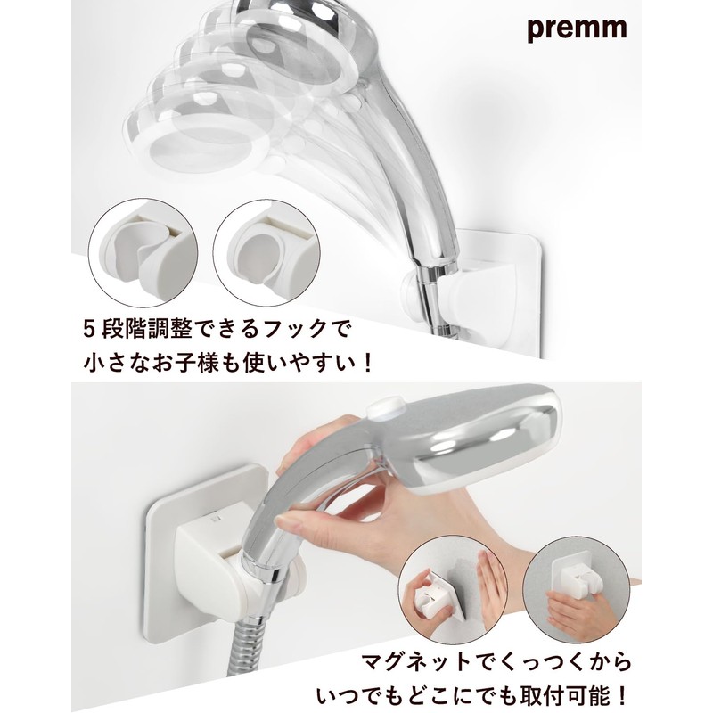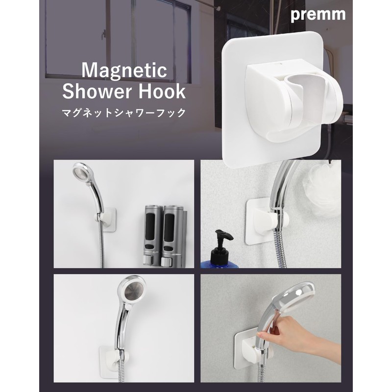 PREMM Shower Hook, Super Strong Magnet, Adjustable Angle, 5 Levels (For Unit Bath)