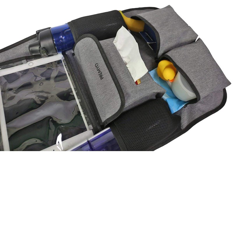 A car back seat organiser is ideal for the next trip! The universal fit car seat protector from PREMYO impresses all the way.