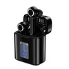 - Black Bluetooth headphones have a double LED display that accurately shows the battery level in both the charging compartment and the Bluetooth headset.