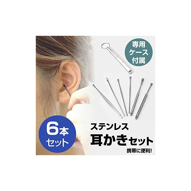prendre 耳かき 6本 セット ケース付属 キーリング付き 耳掃除 コンパクト ステンレス 携帯 耳かきセット 耳掃除セット PR-HORIEAR