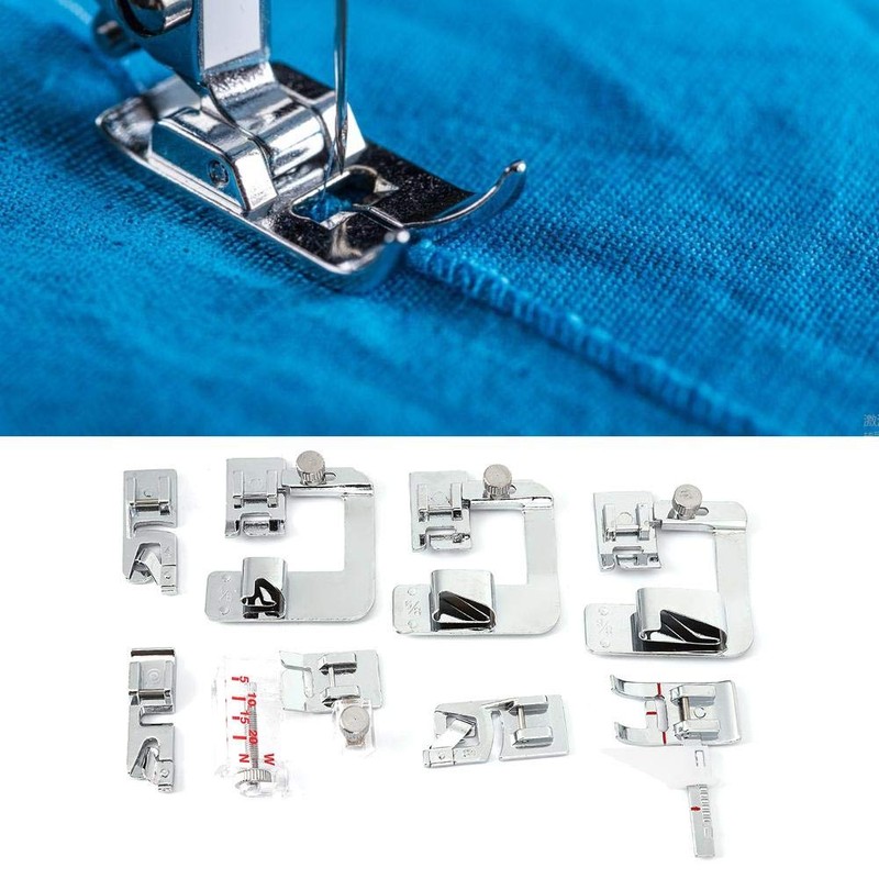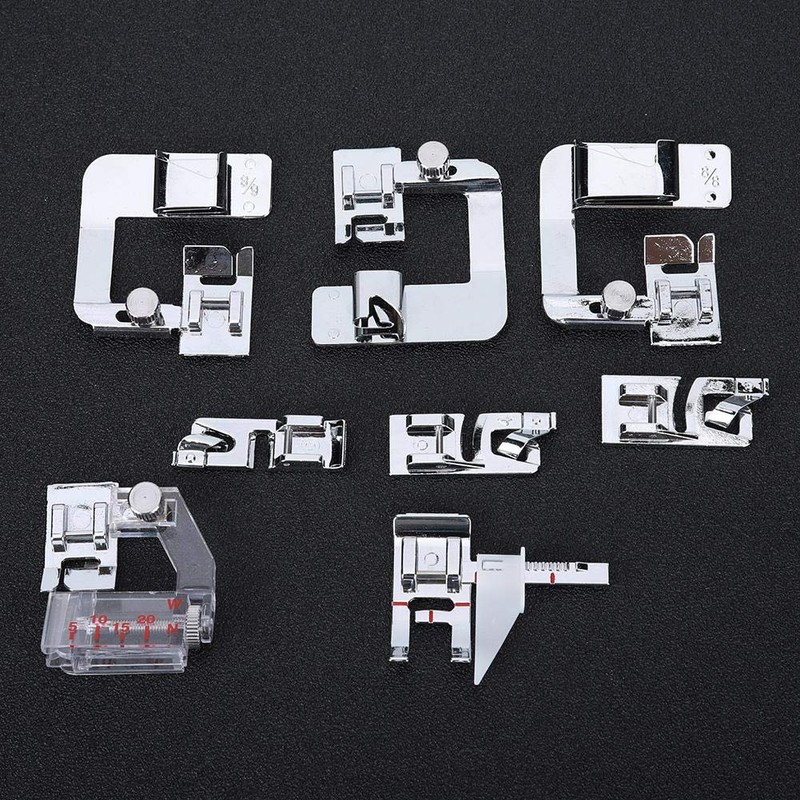 Prensador de dobladillo de 8 piezas/Prensador de calibre/Prensador de tiras de tela Adecuado para máquina de coser multifunción doméstica