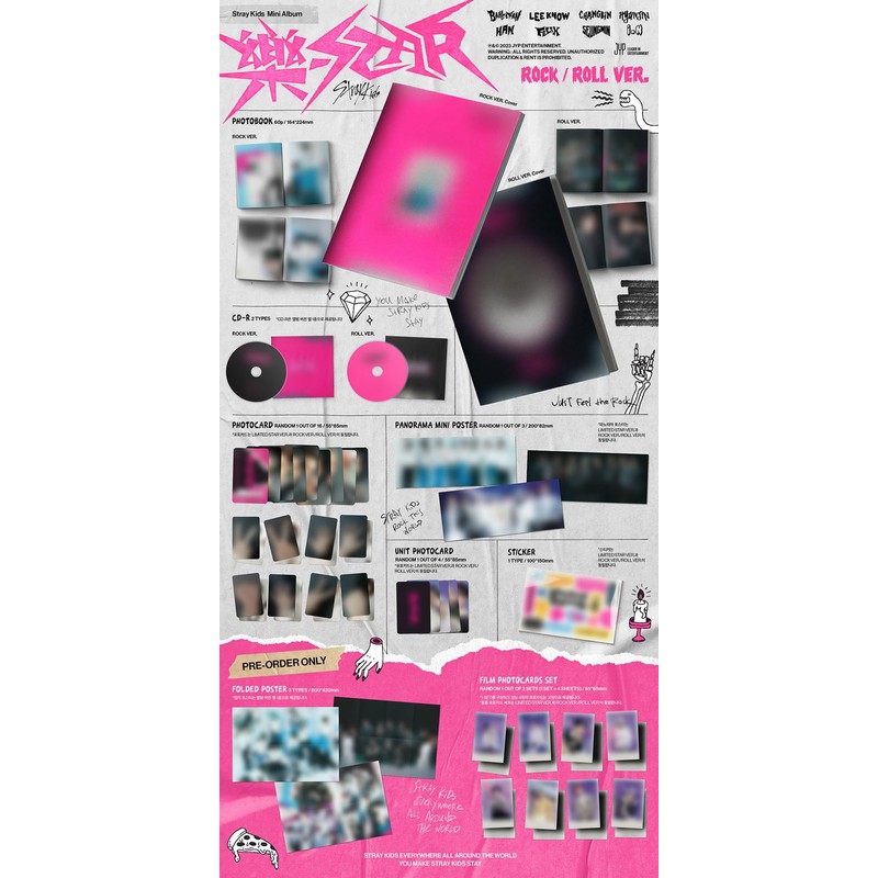 [PreOrder Benefits] STRAY KIDS : ROCK-STAR (ROCK Version) 8th Mini Album CD+Folded Poster+Film Photocards Set+Mini Poster+Unit Photocard+Sticker+(Extra 4 Photocards+1 Double-Sided Photocard+Mirror)