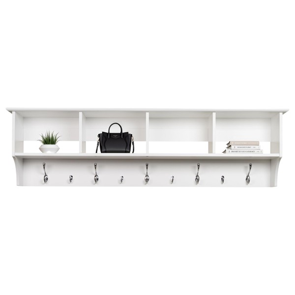 Prepac 60" Contemporary Wall Mounted Coat Rack, Coat Hooks Wall Mount with 4 Shelves, Ideal for Hallway or Entryway Storage Solution, 11.5"D x 60"W x 16.5"H, White