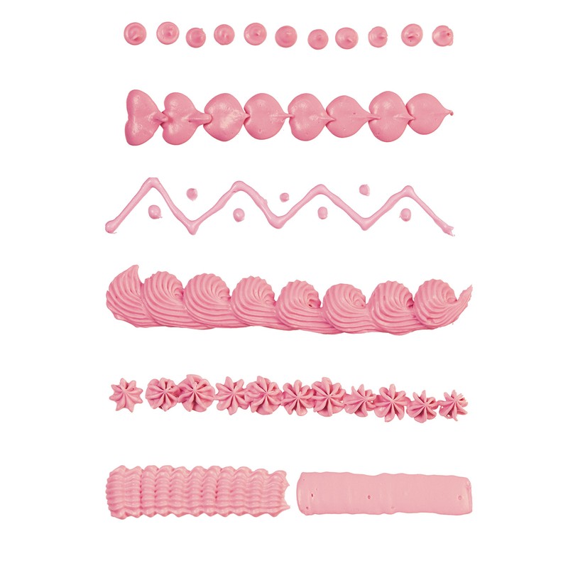 - SIX DIFFERENT PIPING TIPS: Set of 6 piping tips include closed star, French tip, leaf, basket, small circles and large circles