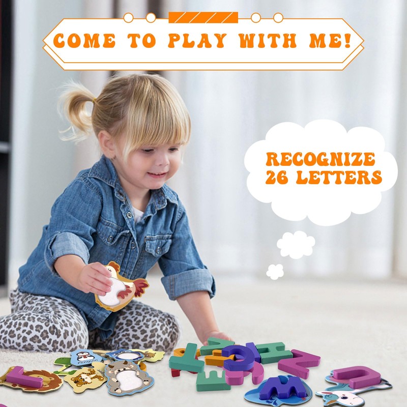 - Learning to read game: The matching groove design of the letter shapes encourages children to solve puzzles through hand-eye coordination, not only recognise letters, but also learn the relationship between the shapes of letters and actual objects, improve spatial perception and logical thinking skills and stimulate preschool age interest of children in learning.