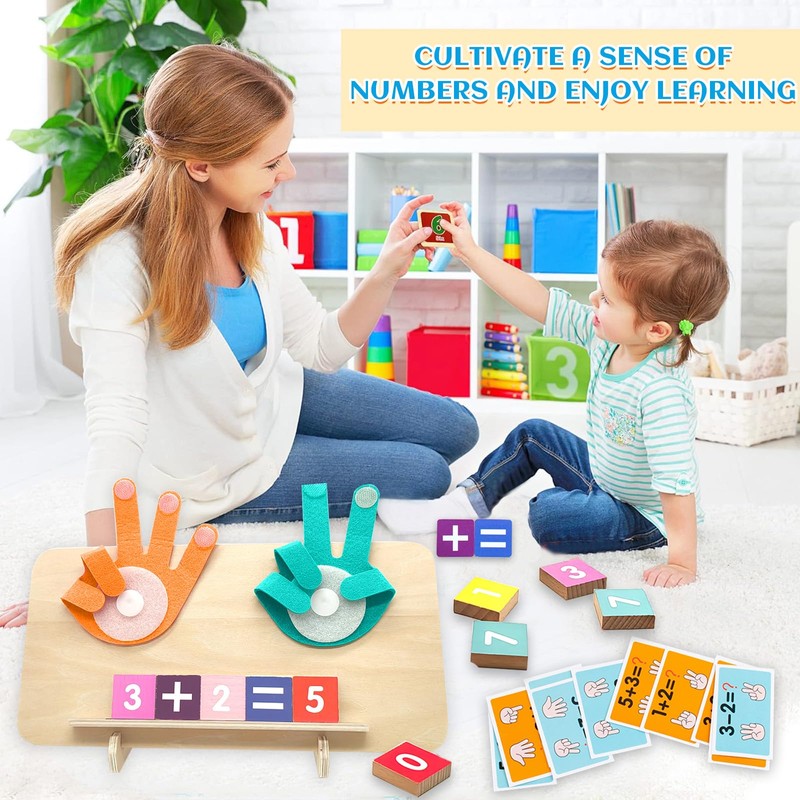 - What You Get: Package includes 13 vibrant number blocks, 10 double-sided learning flashcards, 1 sturdy wooden finger board. This math learning toy is designed to aid your 3+ child in understanding foundational math skills including counting, number recognition, and basic arithmetic. Also an ideal tool for improving children's fine motor skills.