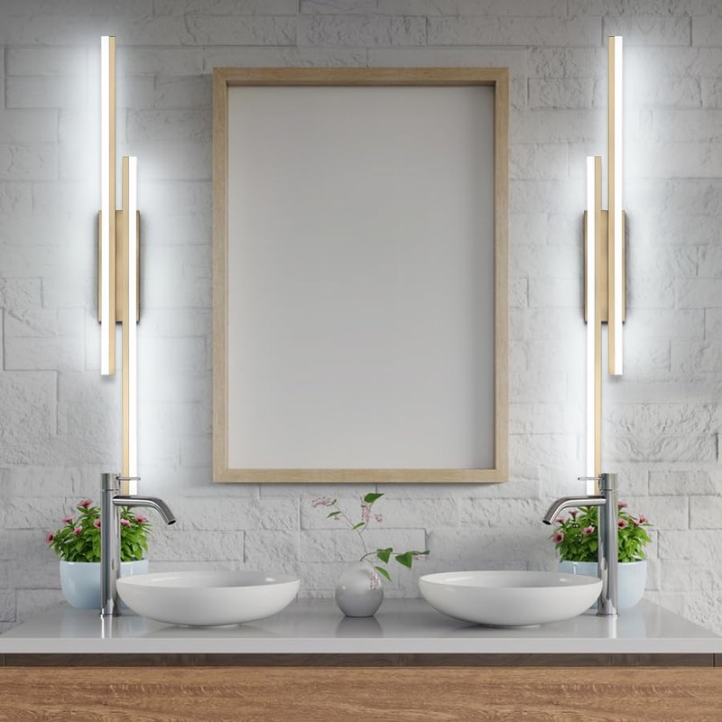 - ❤️【Exclusive Original Design】US Patent Number: US D965,200 S. Modern and irregular line design LED bathroom mirror light brings fashion taste to your bathroom. Light source up and down, making the whole space brighter, and meeting your personal lighting need.