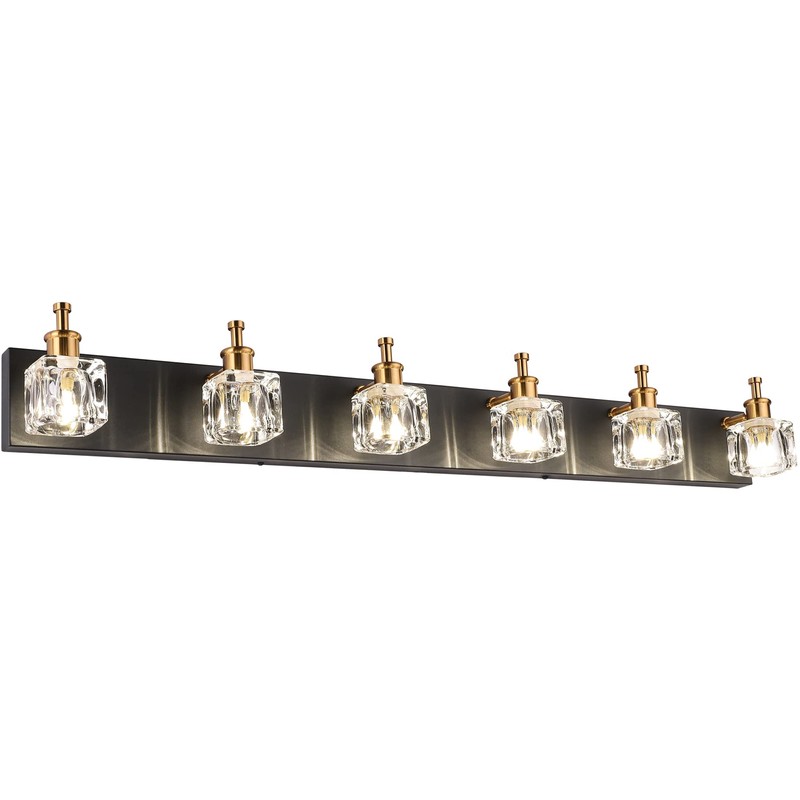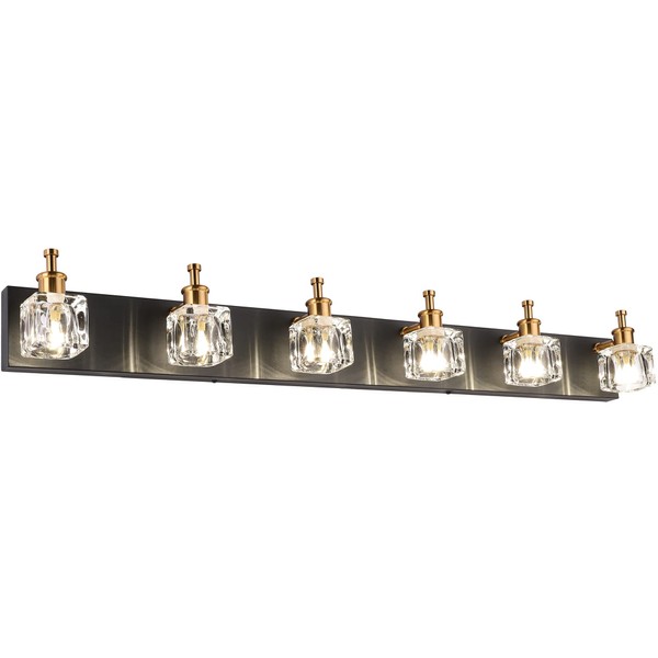 PRESDE Vanity Lights 6 Lights Modern Crystal Bathroom Lights Fixtures Over Mirror Black Bath Lighting (Exclude Bulb)