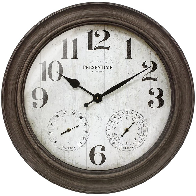Presentime & Co. 26" Clifton in/Outdoor Farmhouse Clock with Thermometer & Hygrometer as All in One Weather Station, Farmhouse Wall Art and Timepiece for Home Decoration, Grey Oak Finish
