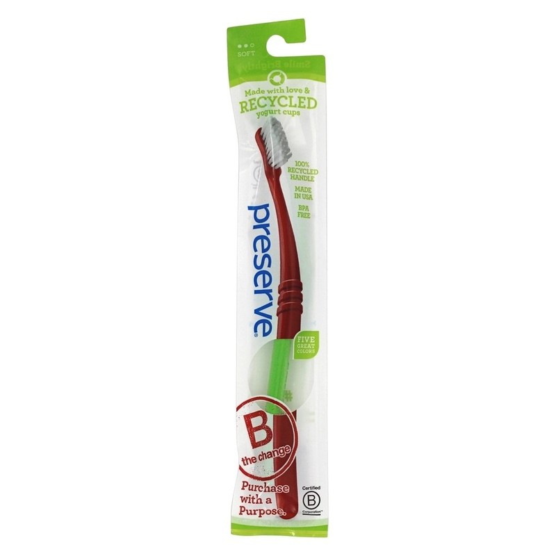 - While the bristles are brand new, the handle is made from recycled yogurt cups