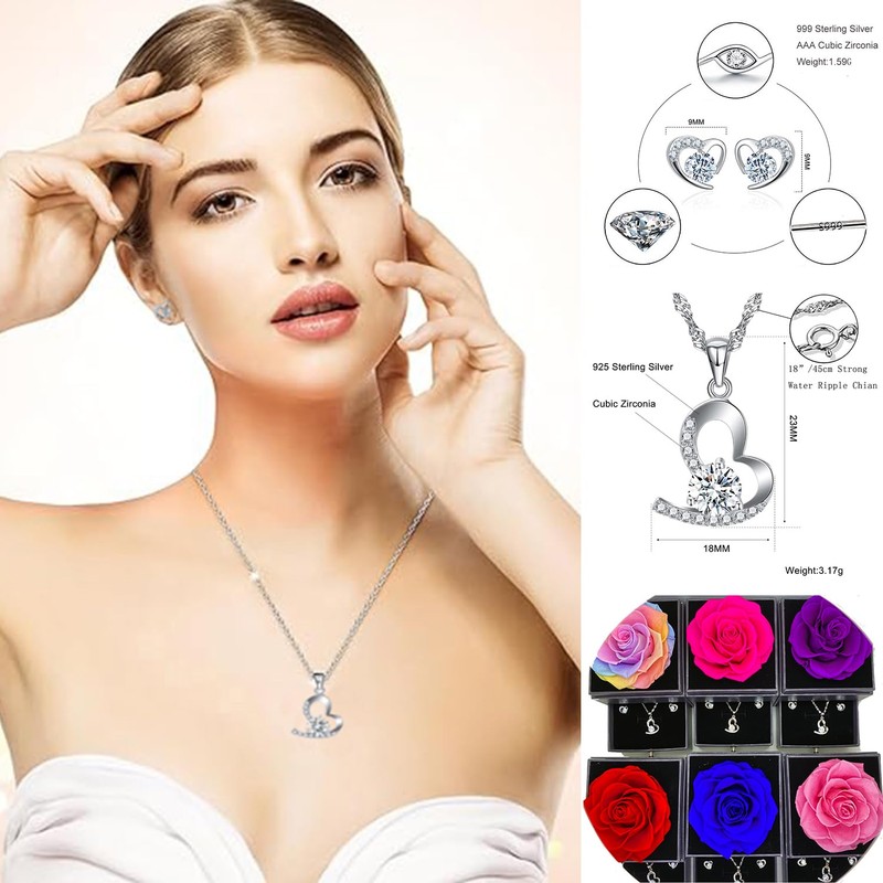 - 【What You Get】The preserved rose necklace set includes a 925 sterling silver necklace,a pair of 999 sterling silver earrings,a gift box with preserved real rose,a paper handbag and a greeting card (You can fill in by yourself ).