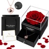 Preserved Real Rose in Box with I Love You Necklace Handmade Eternal Flower Valentine Gifts for Her Girlfriend Wife Mother Women on Wedding Anniversary Birthday Valentine's Day Mother's Day Christmas