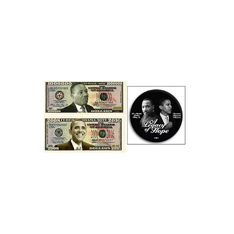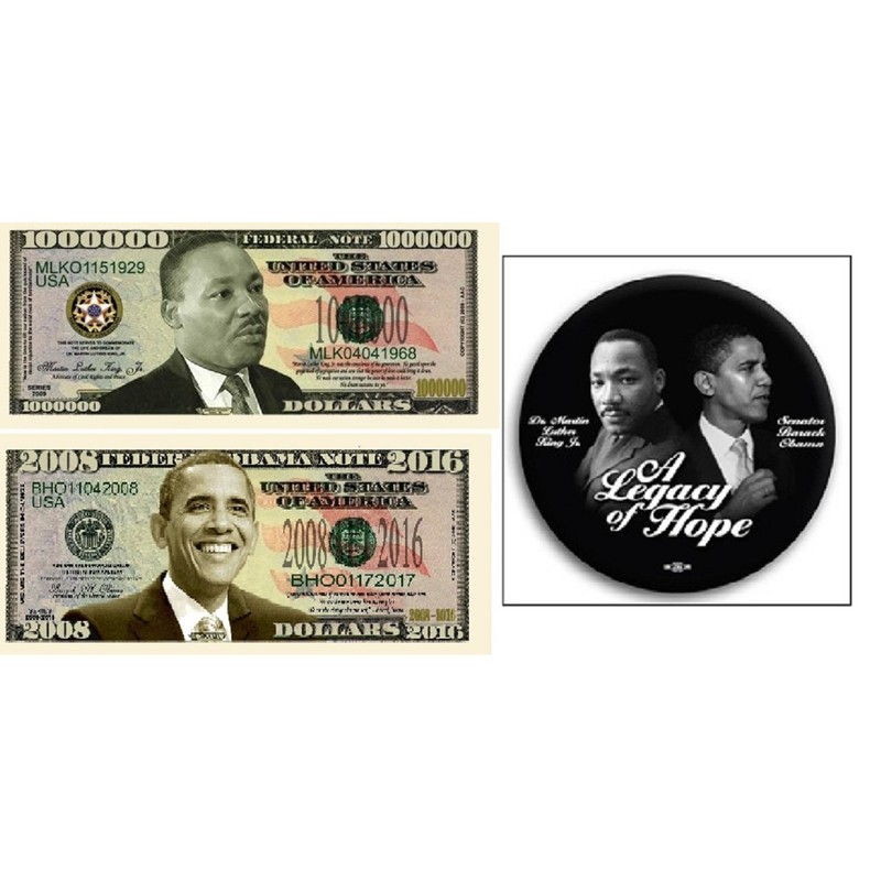 President Obama & Dr Martin Luther King Jr - Commemorative Bills +Bonus Button