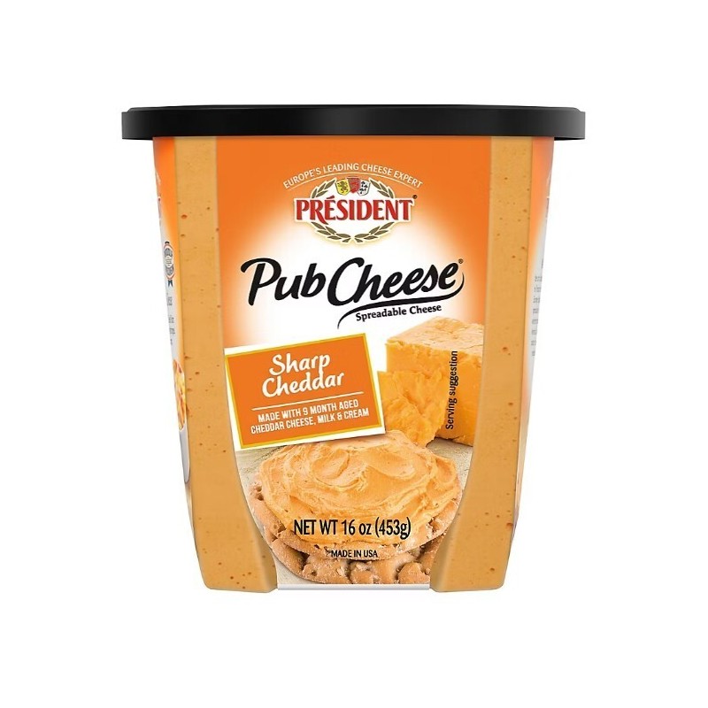 • A party staple, Pub Cheese by President cheese spread is a great addition to a charcuterie board or a cheese board