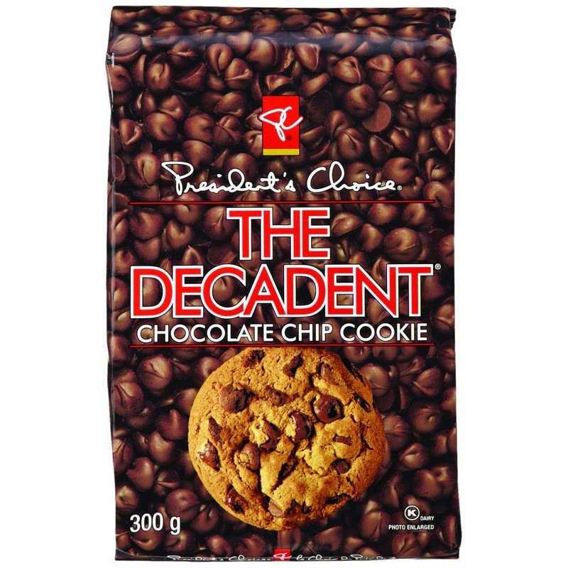 President's Choice the decadent chocolate chip cookie, made with creamery butter and the maximum number of chocolate chips that we could cram in.