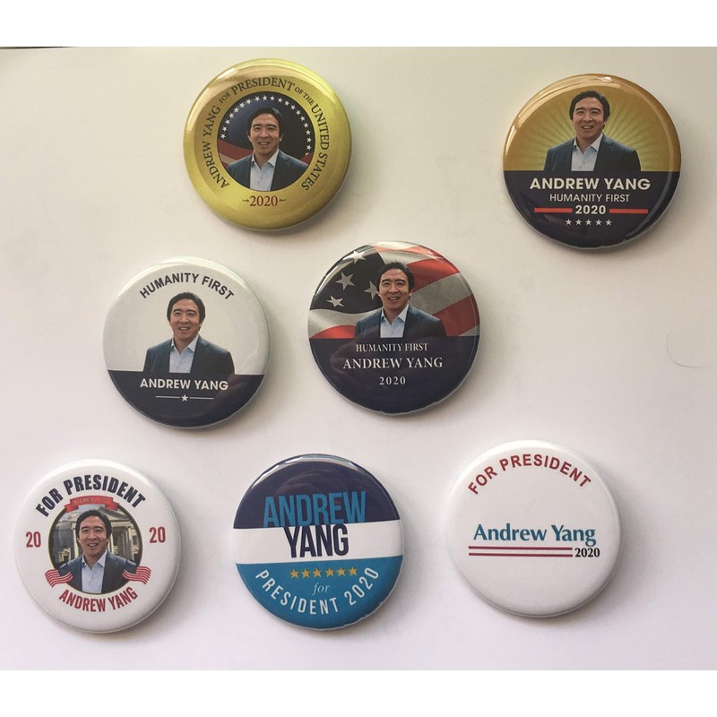 Presidential Election Historical Center Andrew Yang 2020 Campaign Buttons Set of 6 + 1 Free - 2.25 inches