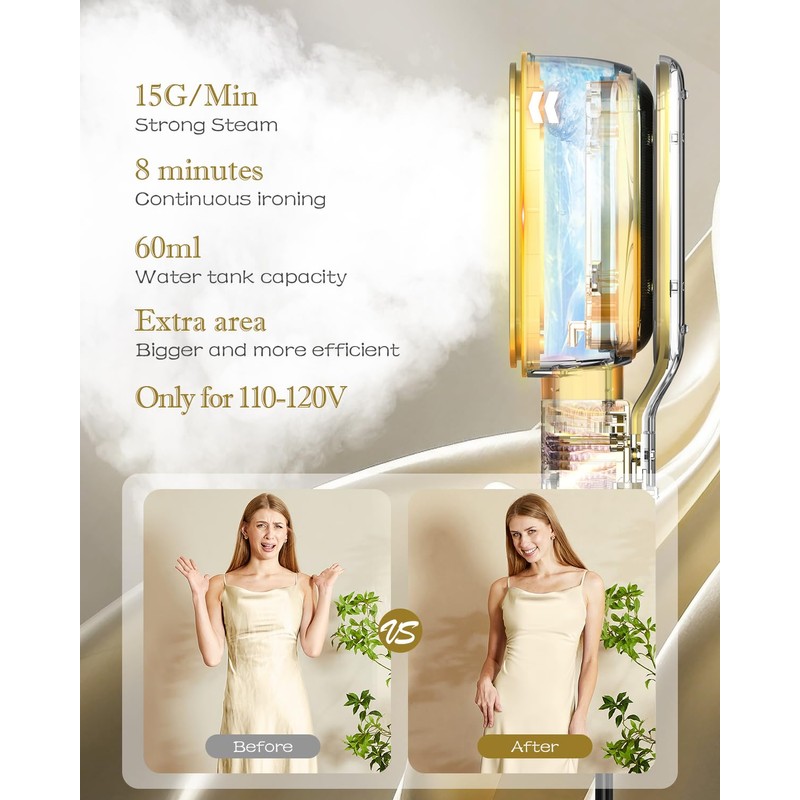 • 【After-sales Service】 Our reliable customer service is here to assist you with any inquiries or concerns about your mini iron steamer, protecting a hassle-free experience and complete satisfaction. You will get 1*handheld steamer, 1*storage bag, 2*heat resistant gloves, 1*power cord taping, 1*measuring cup. (Note: The press clothes steamer iron for clothes is only suitable for 120V voltage.) Say goodbye to wrinkles and hello to crisp, rejuvenated attire