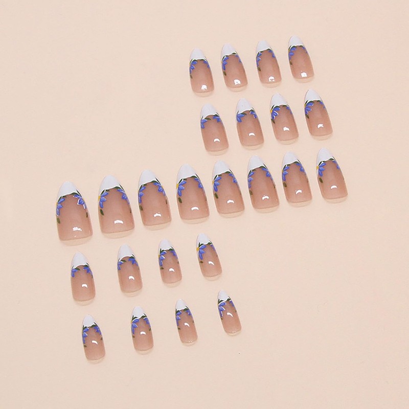 - Includes Tool Kit: You'll get 24 cute almond shaped false nails in 12 sizes. 1 mini nail file, 1 small wooden stick, 1 piece of nail glue sticker. Glue almond fingernails are perfect for most people's nails
