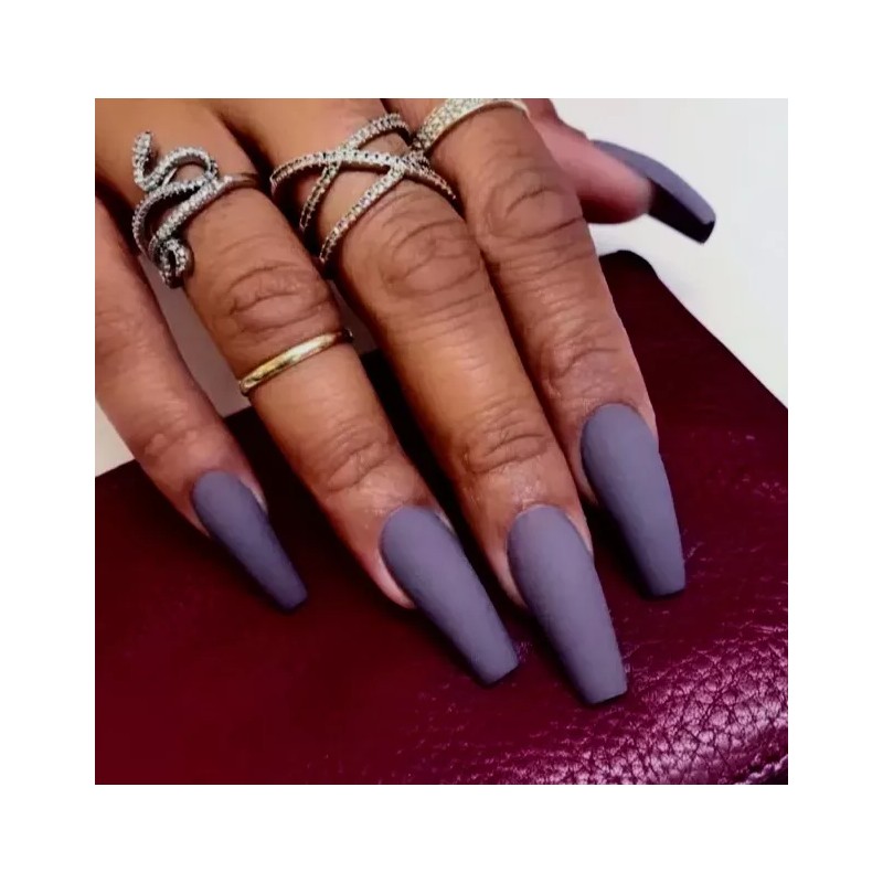 Press on nails 24 Uñas Postizas Desmontables Mate Gris Morado Humo Largas