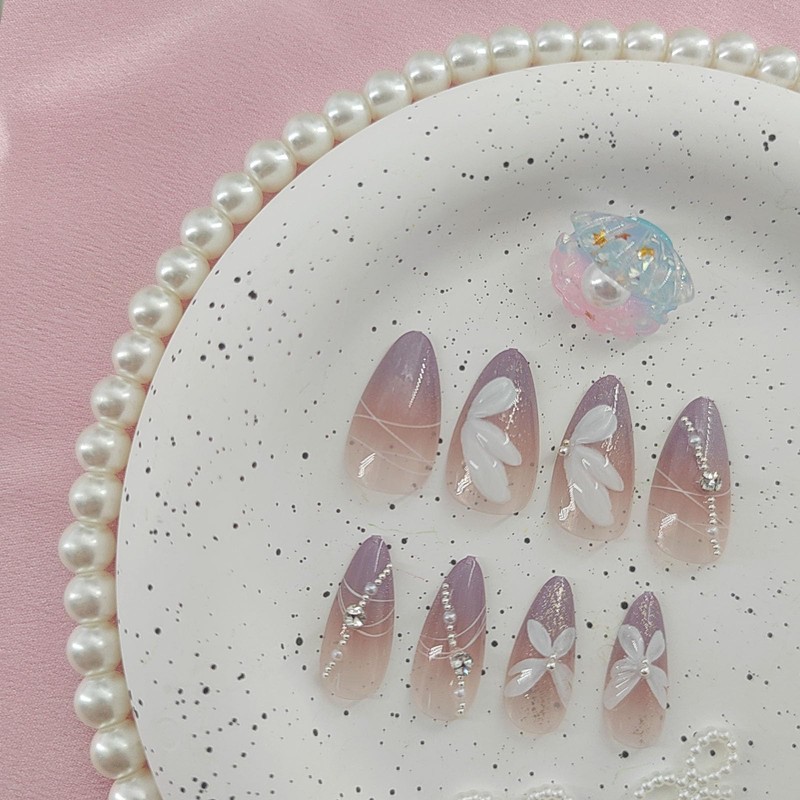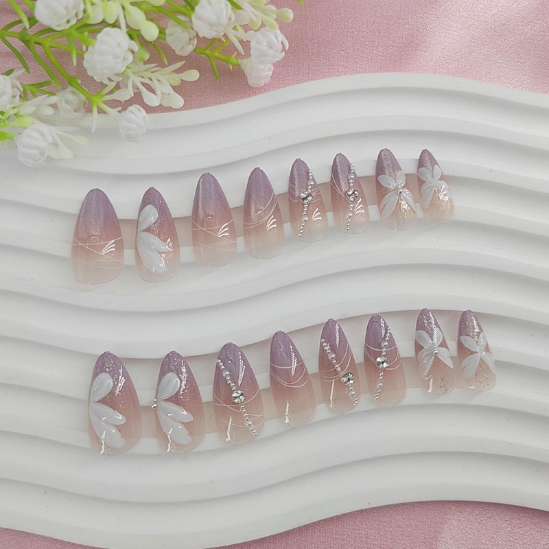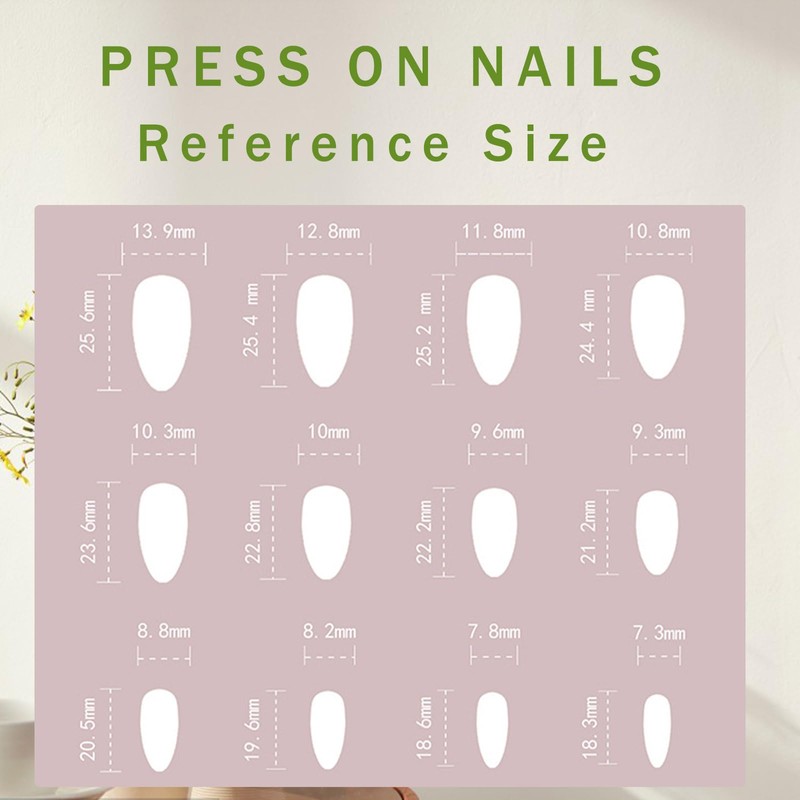 - How to use: Clean your nails first, then choose the appropriate size of almond false nails, stick on nails the jelly glue we gave you, and press the artificial nails for 30 seconds. Simple steps allow you to easily have a nail salon at home