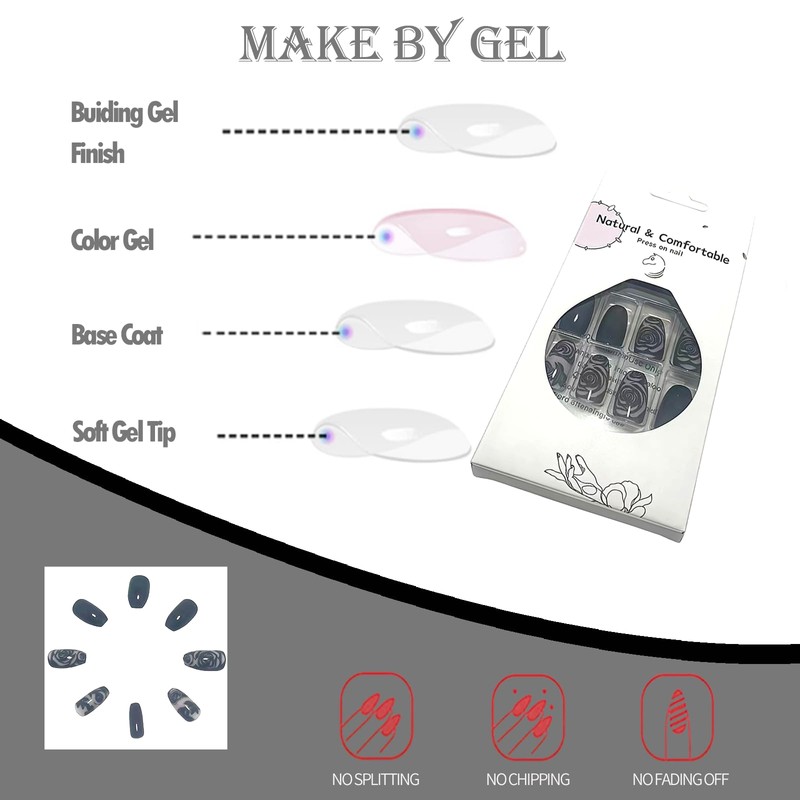 - 【Wear natural】The false nails long are made by soft gel which is soft and flexible, and you feel like real nails. Supremely fit the nail bed with a gentle flex and a seamless cuticle line.