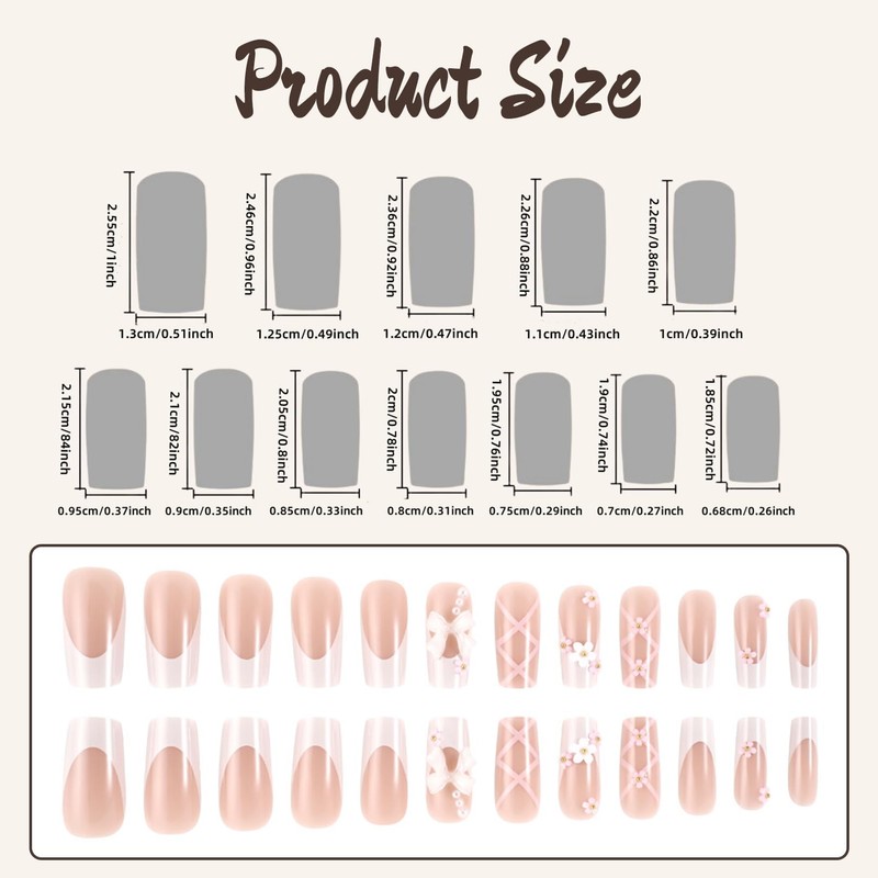 - Press on nails kit: The package contains 24 press on nails (12 assorted sizes) that create beautiful French nail art for special occasions or everyday use