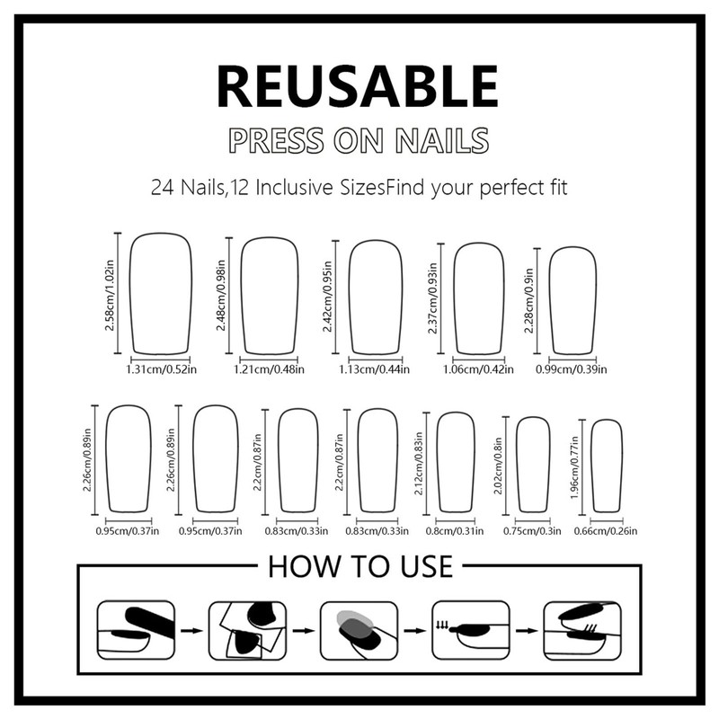 - Package includes: 24 pcs Independence Day press on nails, 24 pcs jelly glue stickers, 1 nail file, 1 wooden stick, 1 alcohol pad, the fake nails are available in 12 different sizes, so it is convenient for you to choose the one that fits your nails