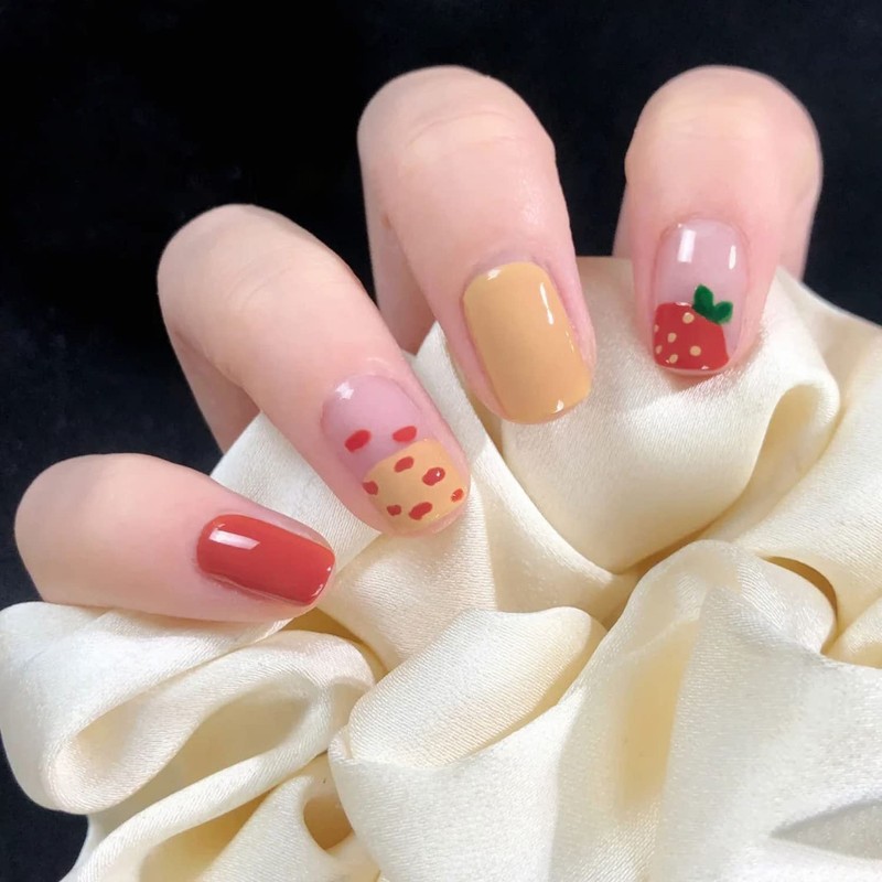 • Easy to Use: Nude fake nails with glue sticker can get your favorite manicure in just 5 minutes without waiting at the nail salon. Fruit pattern different colors give you more choices some simple steps allow you to get the same impressive professional effect at home.
