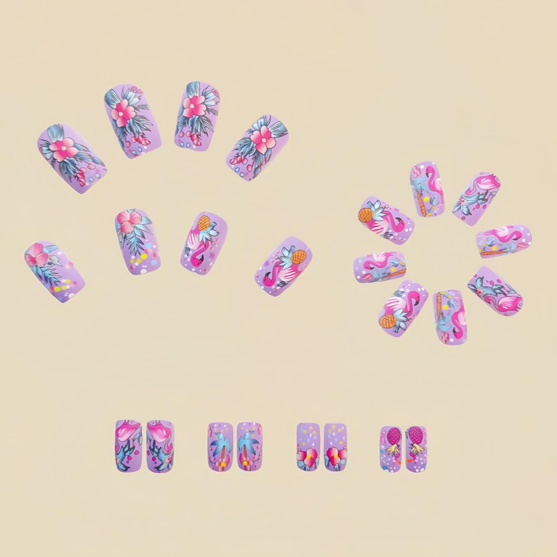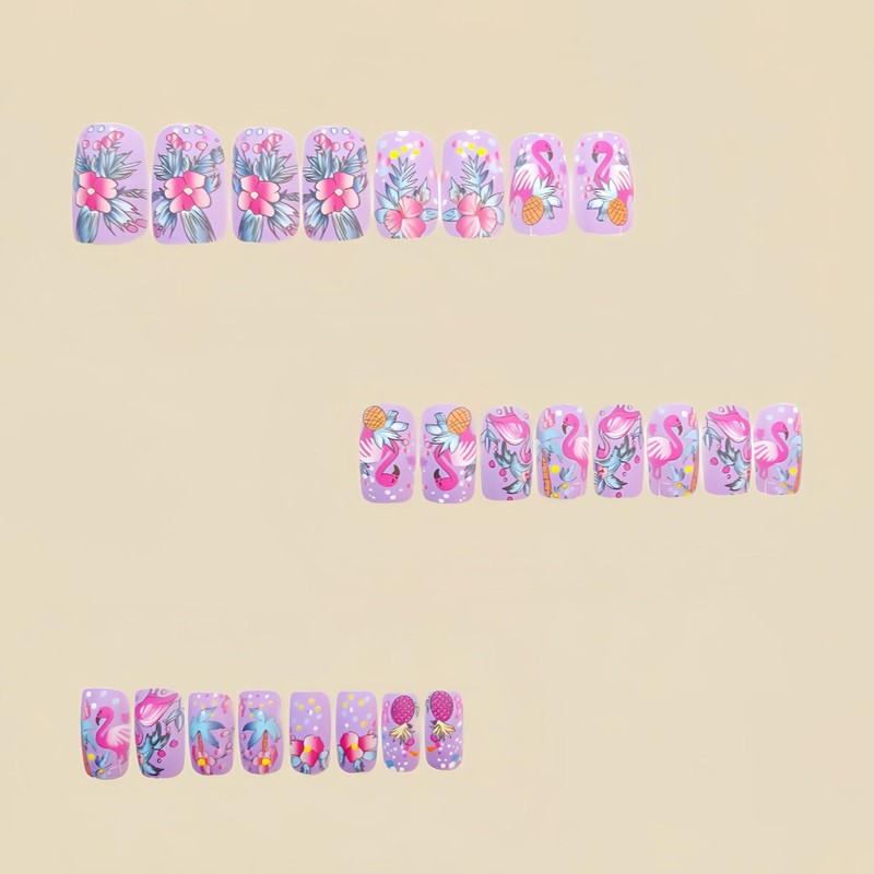 - 【Unique Design】:Purple Flamingo Flower, medium coffin false nails, combine trendy elements with classic color and shape, shiny and attractive.