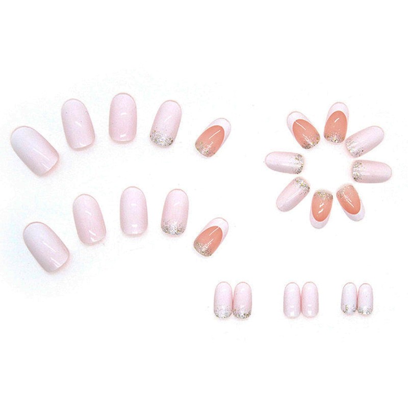 Press on Nails Oval Short False Nails Spring Round Acrylic Nails Press ons French Tip Fake Nails Glossy Glue on Nails Glitter Sequins Designs Light Pink-White Artificial Stick on Nails for Women 24Pcs