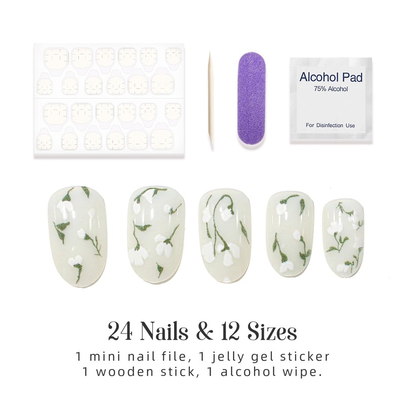 - 【Package Contains】24 pieces false nails,1 piece nail file,1 wooden stick .24 grain jelly.1 alcohol pad.