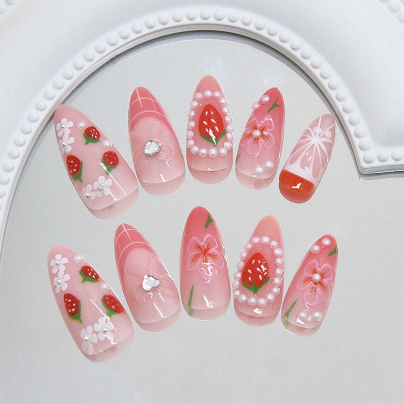 Press on Nails Short Almond LINMEIZAI Fake Nails Press ons Nail Tips Glue on Nails Full Cover Acrylic Nail Kit False Nails Stickers 3D Nail Art with Strawberry Pearls Design for Women Manicure 24Pcs