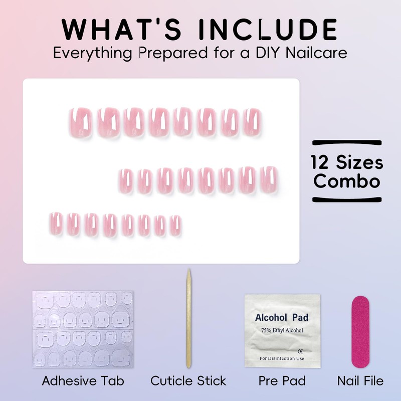 - 【Value Gel Nails Set】- 24pcs nails with 12 sizes ensure a totally custom fit, package comes with 1 * nail adhesive tap,1 * mini nail file and 1 * cuticle stick for flawless application. Get salon-like manicures without gel polish and UV lamps. (Not included glue)