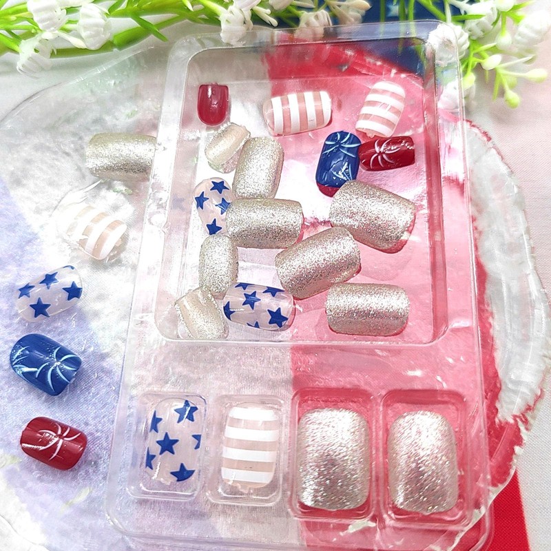 - Suggestion: Using jelly glue on nails can be reused. if you need it to last longer, we recommend that you use nail glue. if you want the independence day false nails to last longer, it is recommended that you use liquid nail glue, which can last for 1-3 weeks.